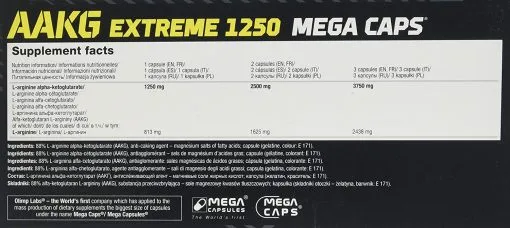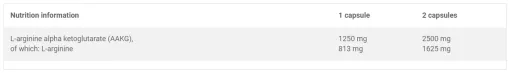 • حاوی ۱۲۵۰ میلی‌گرم ال-آرژنین آلفا کتوگلوتارات (AAKG)