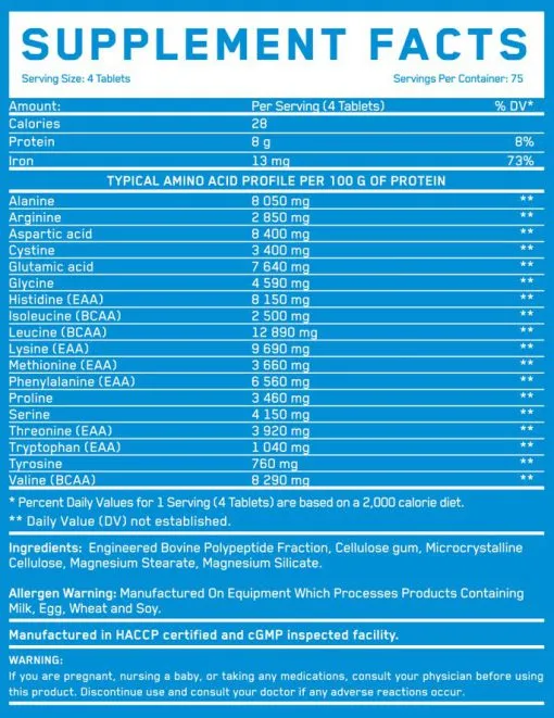 • شامل ۱۲.۸ گرم ال-لوسین جهت تحریک سنتز پروتئین و رشد عضلانی
