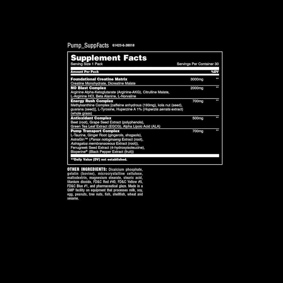 فرمول آن شامل کراتین، ترکیبات نیتریک‌اکسید و نسخه بدون محرک می‌شود.