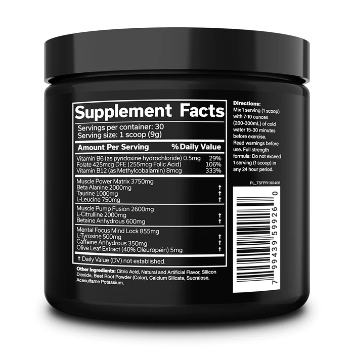 ترکیب «پمپ خون» و «تاخیر خستگی» با ۲۰۰۰ میلیگرم سیترولین، ۲۰۰۰ میلیگرم بتا-آلانین و ۶۰۰ میلیگرم بتایین.