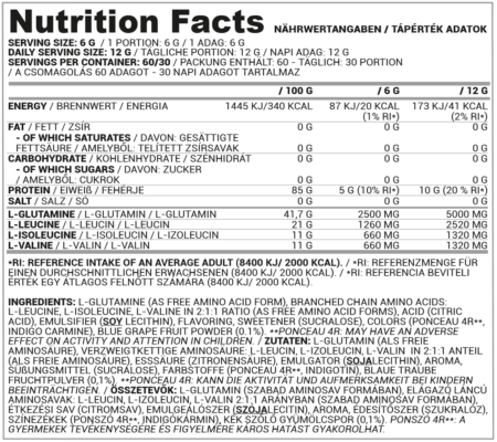 ترکیبی از ۳ آمینو اسید شاخهدار (BCAA) و گلوتامین برای ریکاوری سریع عضلات.